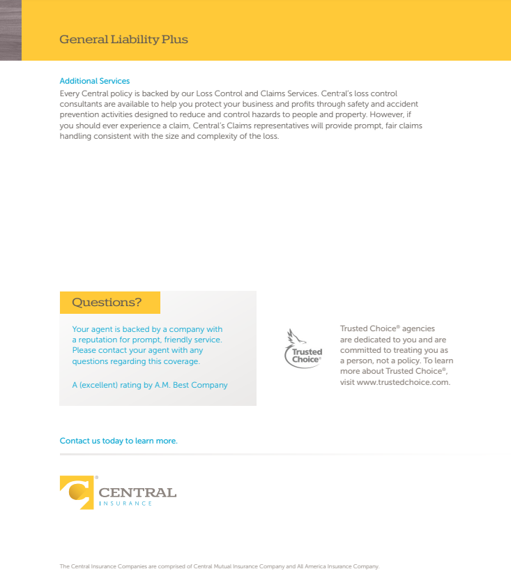 Central General Liability Plus Raymond Moss February 27, 2024 19:30 Updated Download PDF Central - GL Plus.pdf 300 KB Download Comments 0 comments Article is closed for comments.